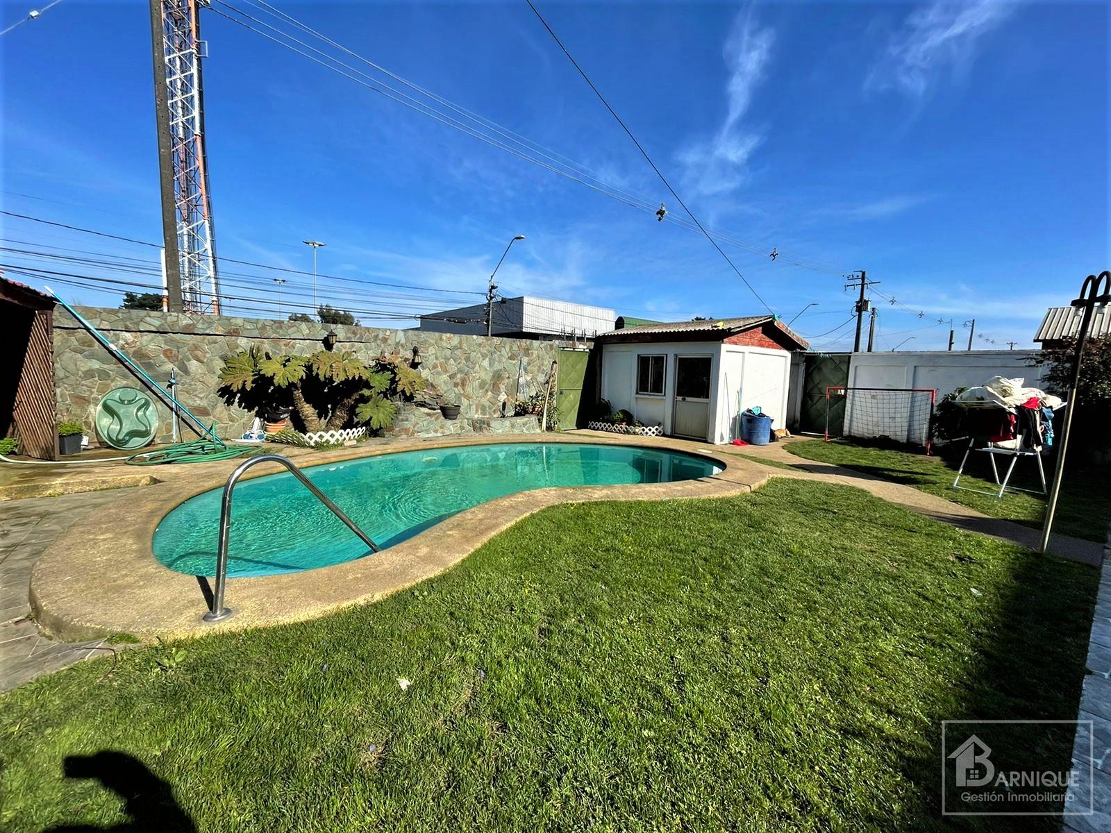 Corresponde a una casa esquina emplazada en un terreno de 404 m2 aproximadamente, y cuenta con antejardín y un gran patio posterior con piscina y quincho.