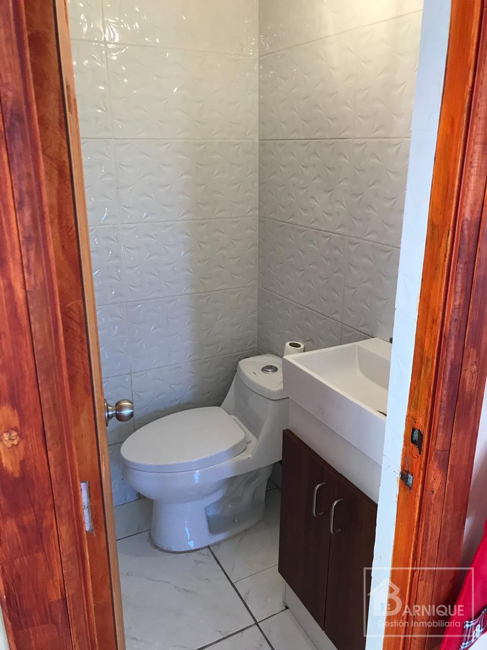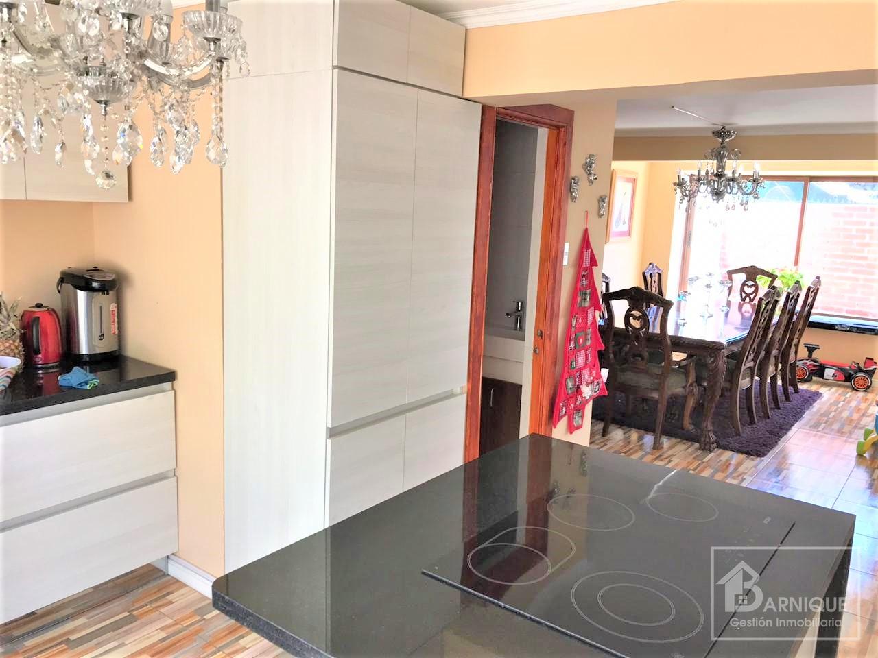 Cocina amoblada y equipada, cuenta con isla con cubierta de granito.